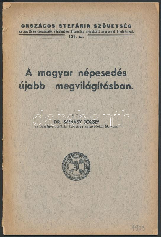 1939 Dr. Szénásy József: A magyar népesedés újabb megvilágításban, Országos Stefánia Szövetség az anyák és csecsemők védelmével államilag megbízott szervezet kiadványai 134. sz., 41p