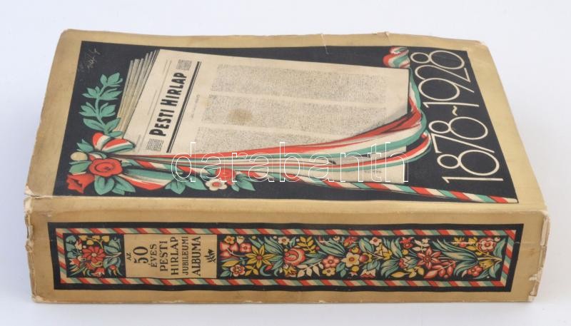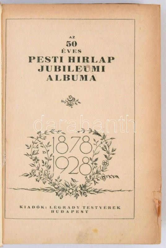 Az 50 éves Pesti Hirlap jubileumi albuma 1878-1928. Budapest, 1928, Légrády-Testvérek, 1072 p. Kiadói papírborítóban, szövegközti és egész oldalas képekkel igen gazdagon illusztrálva, kissé szakadt borítóval, kissé laza kötéssel, de egyébként jó állapotban.