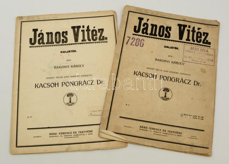 cca 1920 Bakonyi Károly: János vitéz daljáték, 1-2. füz., kotta, kopot... https://www.darabanth.com/de/284-Fernauktion/284.0/Andere-Sammelgebiete/Drucksachen~27/cca-1920-Bakonyi-Karoly-Janos-vitez-daljatek-1-2-fuz-kotta-kopott-papirkotesben~II1474114