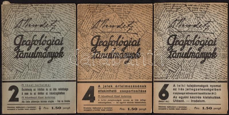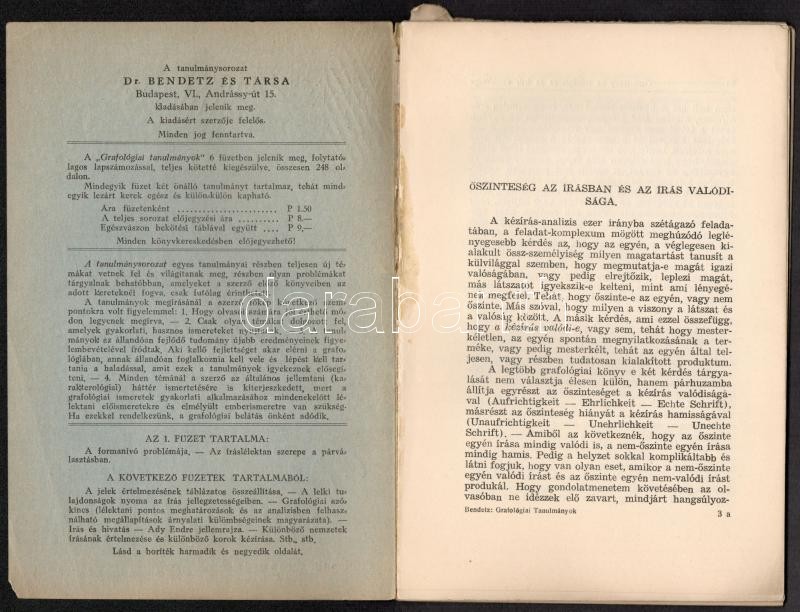cca 1940 Dr. Bendetz és Társa: Grafológiai tanulmányok 2,4,6. füzet (3... https://www.darabanth.com/de/284-Fernauktion/284.0/Andere-Sammelgebiete/Drucksachen~27/cca-1940-Dr-Bendetz-es-Tarsa-Grafologiai-tanulmanyok-2-4-6-fuzet-3-db~II1478635