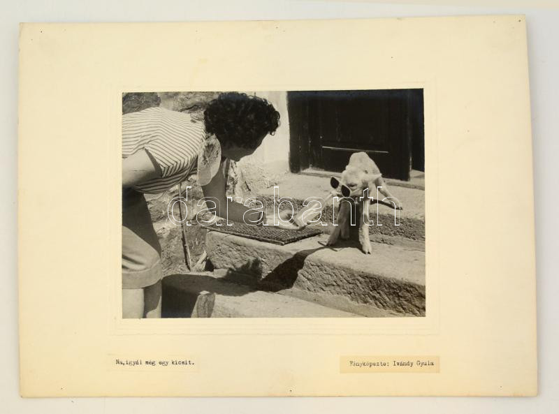 Beschreibung: Ivándy Gyula: Na, igyál még egy kicsit, feliratozott, kartonra kasírozott fotó, 23,5x17 cm, karton: 39x29 cm
