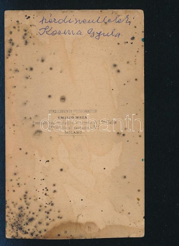 Beschreibung: cca 1863 Kézdiszentléleki Kozma Gyula vizitkártya méretű, feliratozott fotója, Emilio Maza milánói műterméből, 10x6 cm