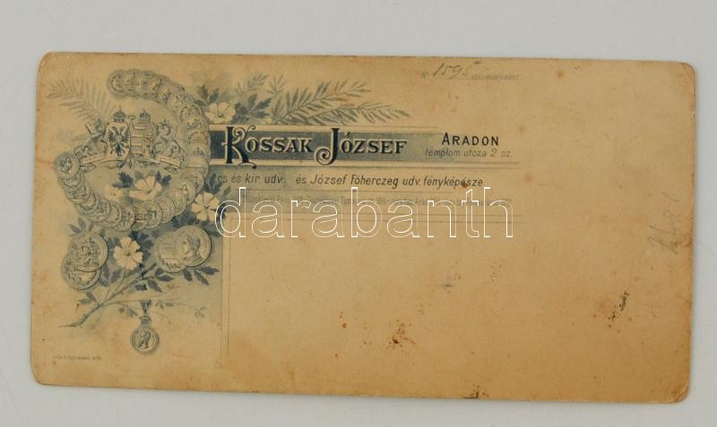 cca 1890 Női portré Kossak aradi műterméből, nagy méretű keményhátú fo... https://www.darabanth.com/de/284-Fernauktion/284.0/Andere-Sammelgebiete/Foto~19/cca-1890-Noi-portre-Kossak-aradi-mutermebol-nagy-meretu-kemenyhatu-foto-215C39711-cm~II1474927