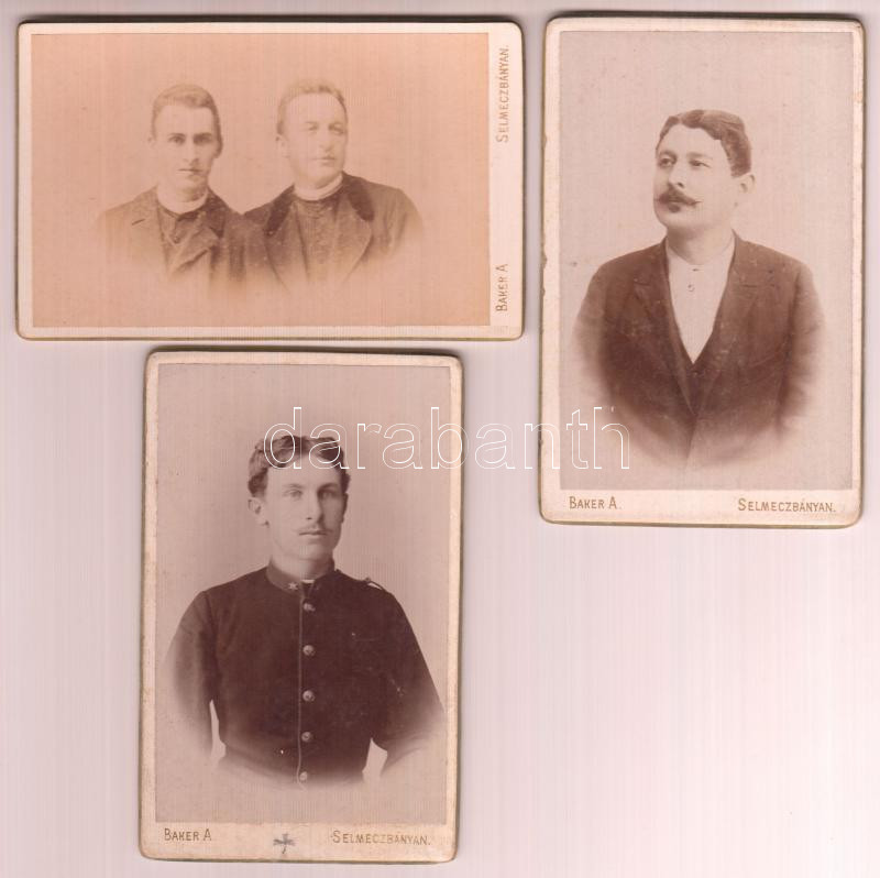 cca 1890 Selmecbánya, Férfiportrék, 3 db keményhátú fotó Baker Alajos ... https://www.darabanth.com/de/284-Fernauktion/284.0/Andere-Sammelgebiete/Foto~19/cca-1890-Selmecbanya-Ferfiportrek-3-db-kemenyhatu-foto-Baker-Alajos-selmecbanyai-muterme~II1480189