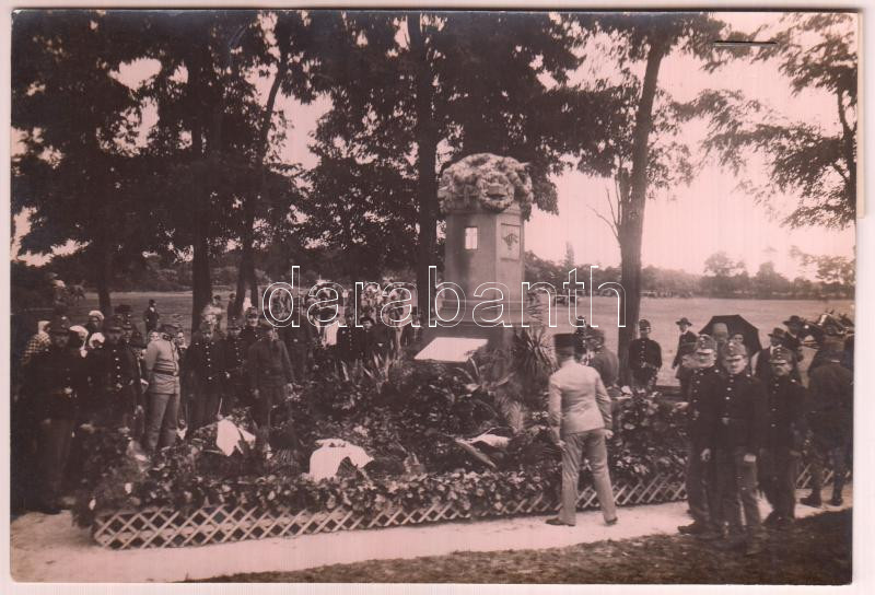 1914 Szoborleleplezési ünnepség az örkényi katonai táborban Károly Albrecht főherceggel. Korabeli sajtófotó hozzátűzött leírással / 1914 Örkény, military camp statue inauguration. Press photo 16x11 cm