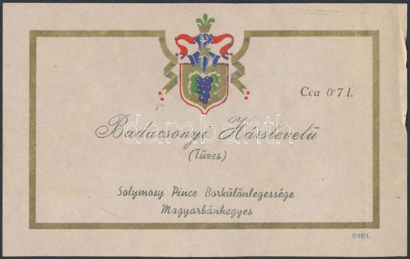 Badacsonyi Hárslevelű Solymosy Pince Borkülönlegessége italcímke https://www.darabanth.com/de/284-Fernauktion/284.0/Andere-Sammelgebiete/Werbungen~20/Badacsonyi-Harslevelu-Solymosy-Pince-Borkulonlegessege-italcimke~II1475350