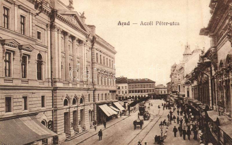 Arad, Aczél Péter utca, kiadja Oláh Sándor és Társa / street https://www.darabanth.com/de/284-Fernauktion/284.0/Ansichtskarten/Siebenburgen~200006/Arad-Aczel-Peter-utca-kiadja-Olah-Sandor-es-Tarsa-street~II1478163