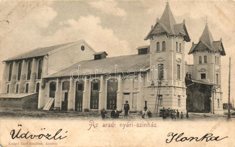 Arad, Nyári színház, kiadja Kerpel Izsó / theatre (ázott / wet damage) https://www.darabanth.com/de/284-Fernauktion/284.0/Ansichtskarten/Siebenburgen~200006/Arad-Nyari-szinhaz-kiadja-Kerpel-Izso-theatre-azott-wet-damage~II1478186