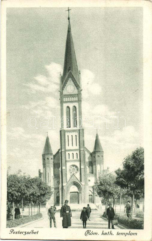 Budapest XX. Erzsébetfalva, Pesterzsébet; Római katolikus templom https://www.darabanth.com/de/284-Fernauktion/284.0/Ansichtskarten/Ungarn~200005/Budapest-XX-Erzsebetfalva-Pesterzsebet-Romai-katolikus-templom~II1476426