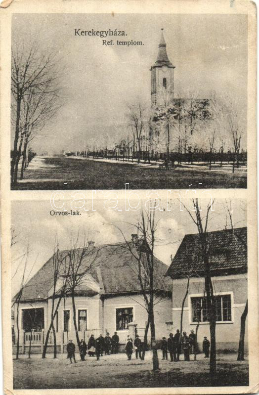 Kerekegyháza, Református templom, Orvos-lak, Szabó János kiadása (EK) https://www.darabanth.com/de/284-Fernauktion/284.0/Ansichtskarten/Ungarn~200005/Kerekegyhaza-Reformatus-templom-Orvos-lak-Szabo-Janos-kiadasa-EK~II1478733