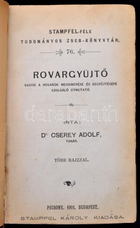 Cserey Adolf három munkája: Rovargyűjtő; Bogárhatározó; Lepkehatározó. Bp. - Pozsony, 1901, Stampfel Károly (Stempfel-féle tudományos zsebkönyvtár 76., 87-89., 96-98.). A három munka utólagosan egybekötve, félvászon kötésben, egyébként jó állapotban.