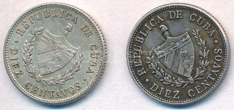 Beschreibung: Kuba 1948-1949. 10c Ag (2x) T:2 patina