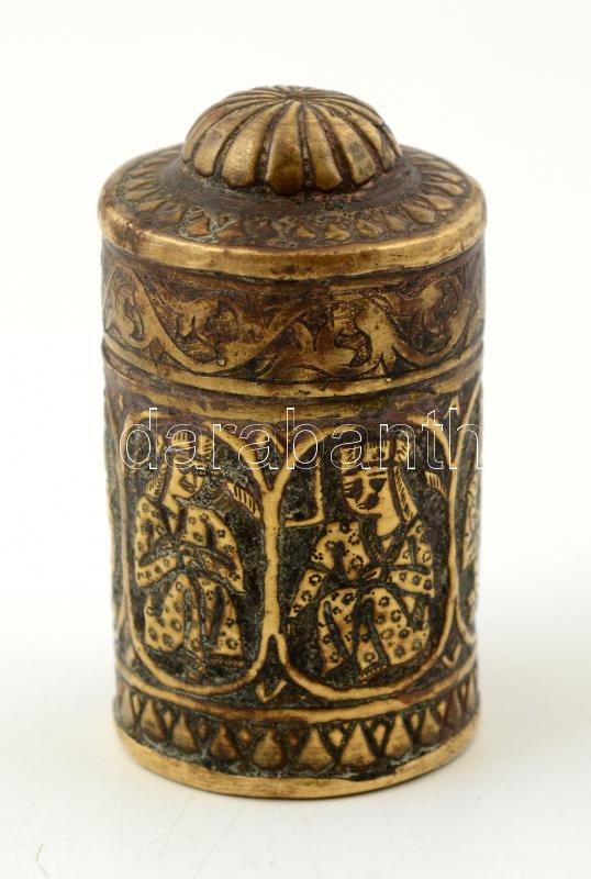 Beschreibung: Antik réz szelence, belső Ázsiáiból, oldalán előkelőségekkel, poncolt, jelzés nélkül, m:6 cm
