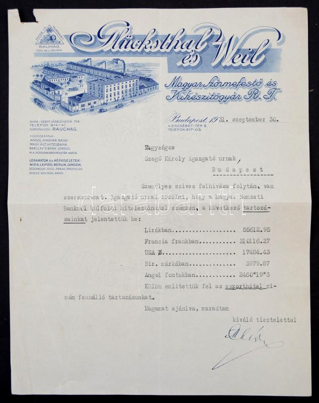 1931 Glücksthal és Weil Szőrmefestő és Kikészítőgyár Rt.. Fejléces szá... https://www.darabanth.com/de/285-Fernauktion/285.0/Andere-Sammelgebiete/Dokument~100016/1931-Glucksthal-es-Weil-Szormefesto-es-Kikeszitogyar-Rt-Fejleces-szamla~II1493946