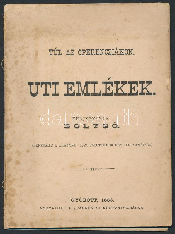 1883 Győr, "Túl az Operencziákon, uti emlékek, feljegyezte Bolygó... https://www.darabanth.com/de/285-Fernauktion/285.0/Andere-Sammelgebiete/Drucksachen~100027/1883-Gyor-Tul-az-Operencziakon-uti-emlekek-feljegyezte-Bolygo-lenyomat-a-Hazank-1883-~II1494569