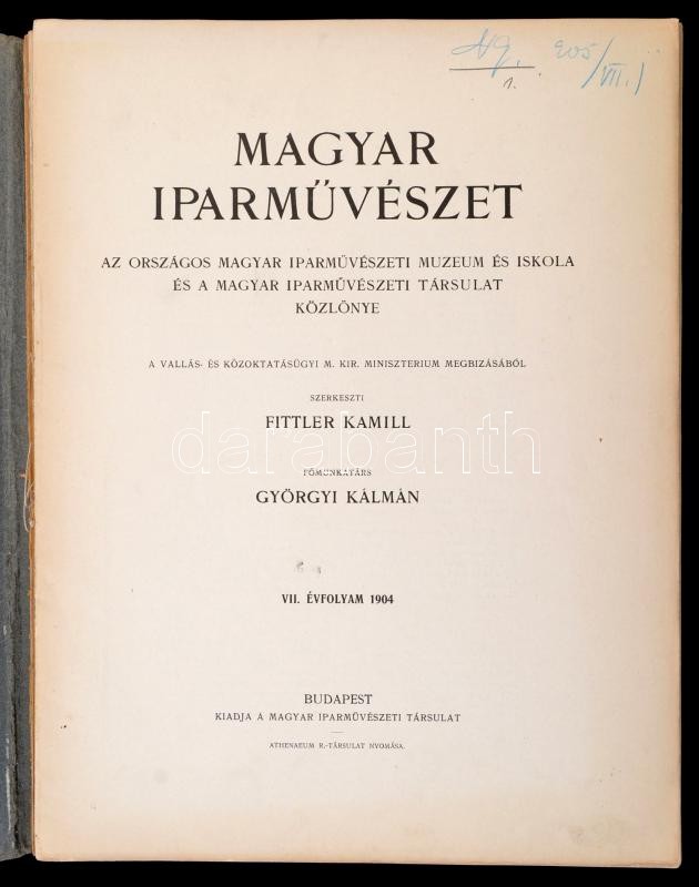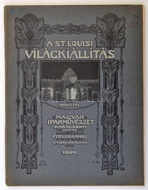 1904 A St. Louisi Világkiállítás. Magyar Iparművészet, Szerk.: Fittler Kamill, Főmunkatárs: Györgyi Kálmán, VIII. évf. 6 szám. Bp., Magyar Iparművészeti Társulat, Athenaeum Rt. ny. Kiadói papírkötés, megviselt állapotban, a könyvtest elvált a borítótól, a könyvtest szétvált.