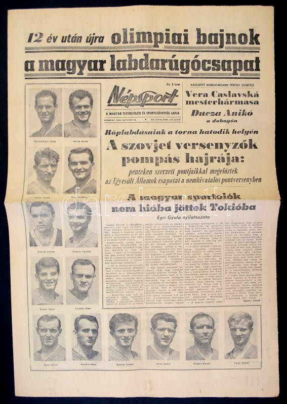 1964 A Népsport XX. évfolyamának 214. száma, címlapon a labdarúgó csap... https://www.darabanth.com/de/285-Fernauktion/285.0/Andere-Sammelgebiete/Drucksachen~100027/1964-A-Nepsport-XX-evfolyamanak-214-szama-cimlapon-a-labdarugo-csapat-olimpiai-sikerevel~II1491975