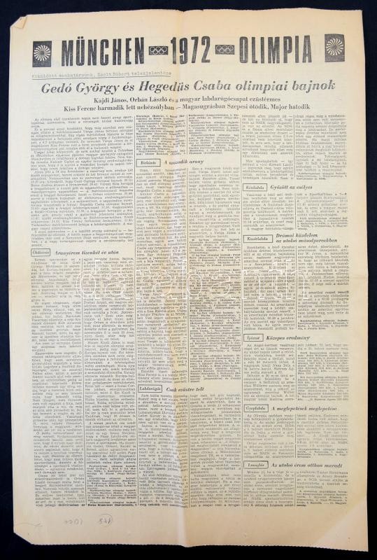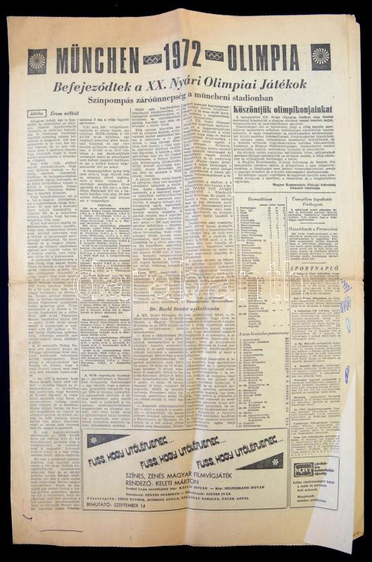 Beschreibung: 1972 A Magyar Nemzet XXVIII. évfolyamának 215. száma, benne Gedó György és Hegedűs Csaba olimpiai sikereivel