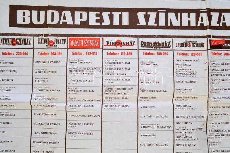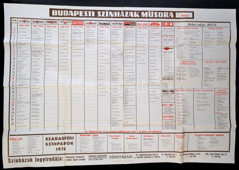 1974 A budapesti színházak nagyméretű műsoros plakátja, 70×100 cm https://www.darabanth.com/de/285-Fernauktion/285.0/Andere-Sammelgebiete/Drucksachen~100027/1974-A-budapesti-szinhazak-nagymeretu-musoros-plakatja-70C397100-cm~II1488090