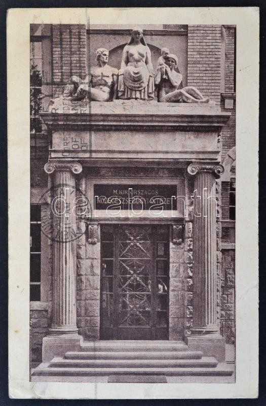 cca 1920-1940 M. Kir. Közegészségügyi Intézet nyomtatványai, tervrajzok (padlástartályos-, hidrofonos fürdőberendezés, egyrészes lengőléces-, nyitott tömeg-, lengőléces árnyékszék, egészségházak a, b1, b2, g, k, ), leírások (egészségházak vizvezeték- és fürdőberendezésének leírása és müködése, lengőléces árnyékszék leírása), valamint a Közegészségügyi intézet bejáratát ábrázoló képeslap, változó méretben, többnyire jó állapotban.