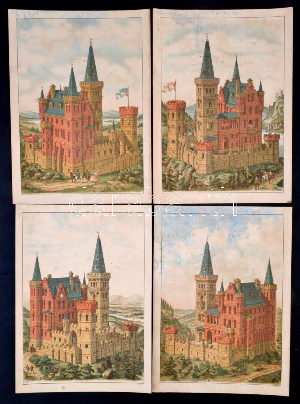 Beschreibung: cca 1930 4 db nagyméretű. várat ábrázoló fametszetes tábla. 29x40 cm