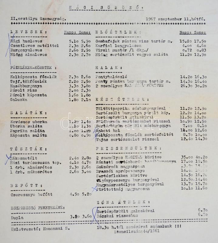 cca 1930 Hági söröző étlap https://www.darabanth.com/de/285-Fernauktion/285.0/Andere-Sammelgebiete/Drucksachen~100027/cca-1930-Hagi-sorozo-etlap~II1493866