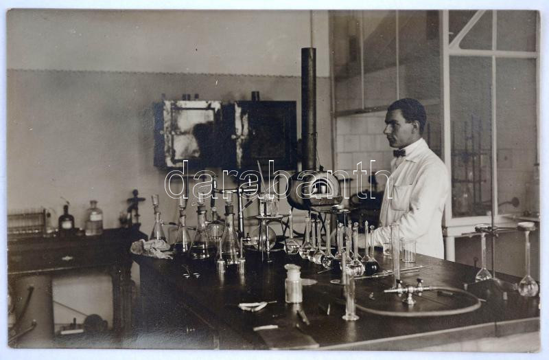 cca 1930 Vegyész labor, 9x14 cm. https://www.darabanth.com/de/285-Fernauktion/285.0/Andere-Sammelgebiete/Foto~100019/cca-1930-Vegyesz-labor-9x14-cm~II1488755
