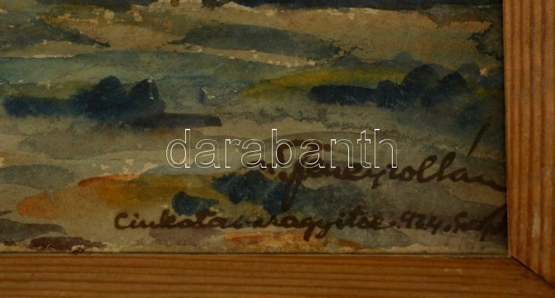 Beschreibung: Jeney Zoltán (1899-?):Cinkotai ... Akvarell, papír, jelzett, üvegezett keretben, sérült, 16×22cm