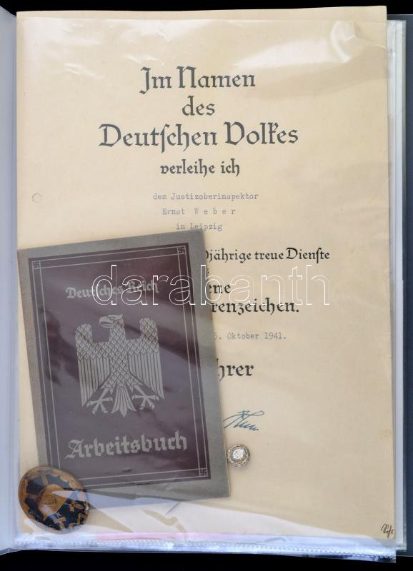 cca 1919-1956 Lipcsei német családi hagyaték: több személy iratai, közte náci anyagok is, kitüntetésadományozók, 2 db kitüntetés, igazolványok, stb., köztük másolatok is