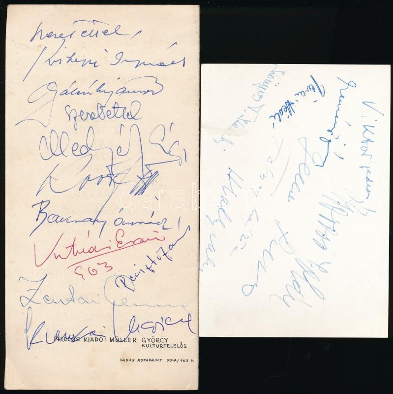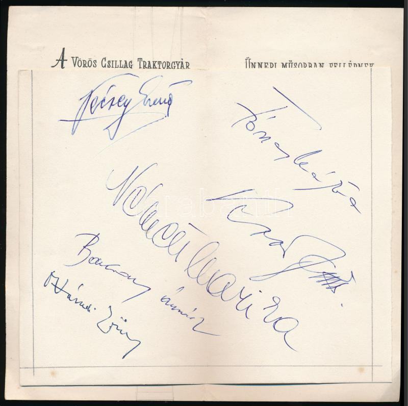 1963 Meghívó a Vörös Csillag Traktorgyár Szakszervezeti Bizottsága által rendezett ünnepi záróestre, neves művészek aláírásával (Németh Marika, Fónay Márta, Dévai Hédi, stb.)