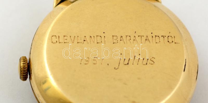 cca 1950 Omega karóra. Vastagon aranyozott, ajándékozási véséssel. https://www.darabanth.com/de/285-Fernauktion/285.0/Andere-Sammelgebiete/Uhren~100009/cca-1950-Omega-karora-Vastagon-aranyozott-ajandekozasi-vesessel~II1494327