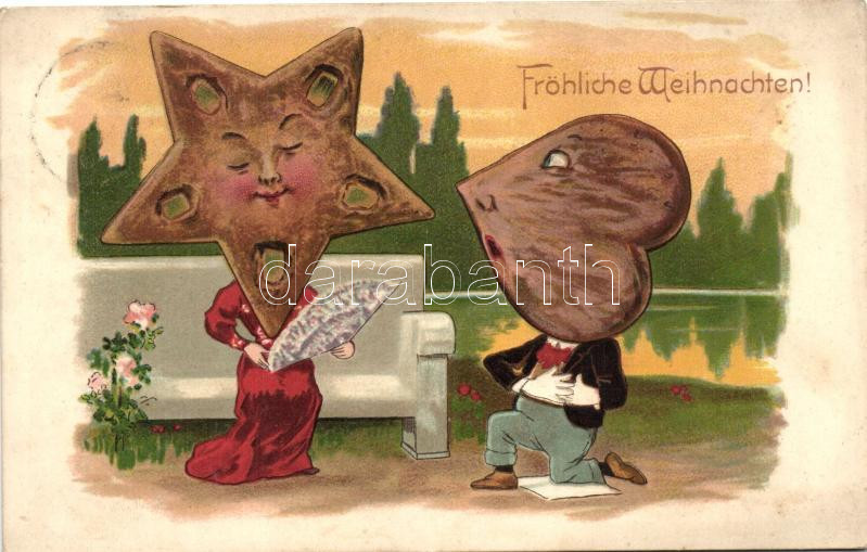 Fröhliche Weihnachten / Christmas gingerbread romance, humour, litho https://www.darabanth.com/de/285-Fernauktion/285.0/Ansichtskarten/GruC39Fkarten-Feste~200086/Frohliche-Weihnachten-Christmas-gingerbread-romance-humour-litho~II1268702