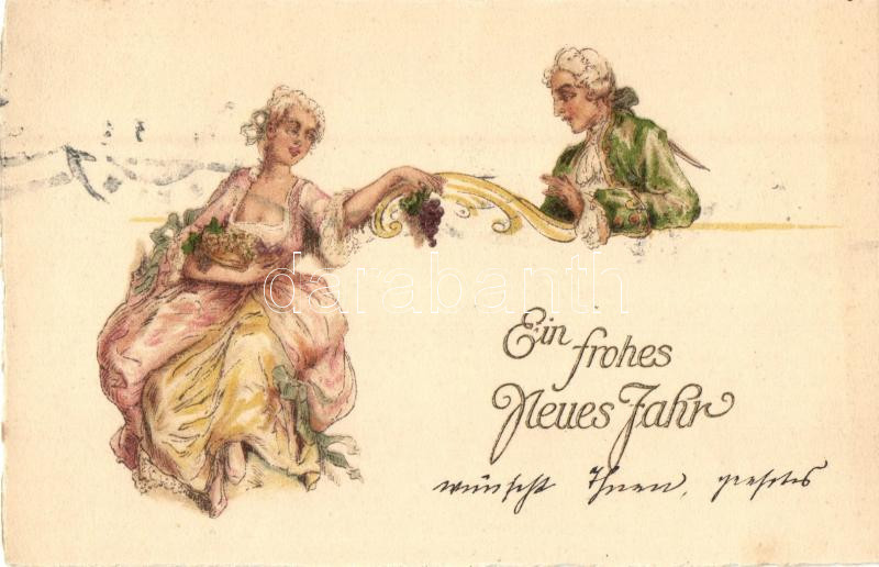 New Year, Baroque couple, litho https://www.darabanth.com/de/285-Fernauktion/285.0/Ansichtskarten/GruC39Fkarten-Feste~200086/New-Year-Baroque-couple-litho~II1491668