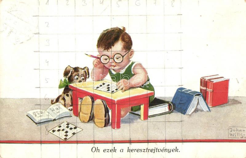 'Oh ezek a keresztrejtvények' / Child solving crosswords wit... https://www.darabanth.com/de/285-Fernauktion/285.0/Ansichtskarten/Kinder~200060/Oh-ezek-a-keresztrejtvenyek-Child-solving-crosswords-with-dog-humorous-s-John-Wills-EB~II1482685