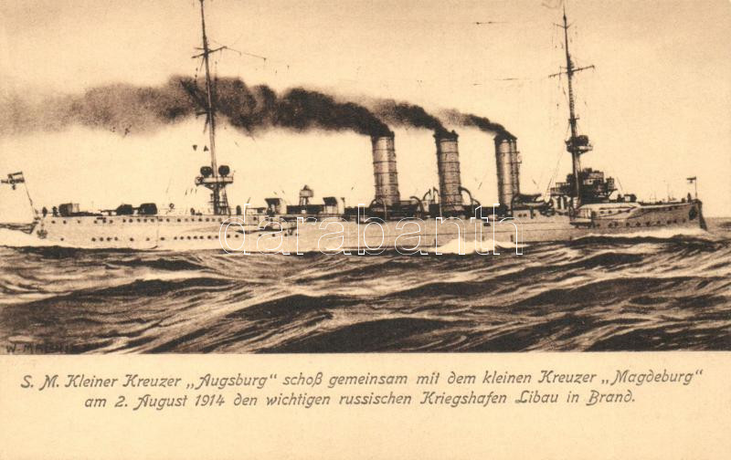 SM Kleiner Kreuzer Augsburg, SM Kleiner Kreuzer Magdeburg in Libau, Kr... https://www.darabanth.com/de/285-Fernauktion/285.0/Ansichtskarten/Kriegsschiffe~200061/SM-Kleiner-Kreuzer-Augsburg-SM-Kleiner-Kreuzer-Magdeburg-in-Libau-Kriegs-Erinnerungskarte-German~II954427