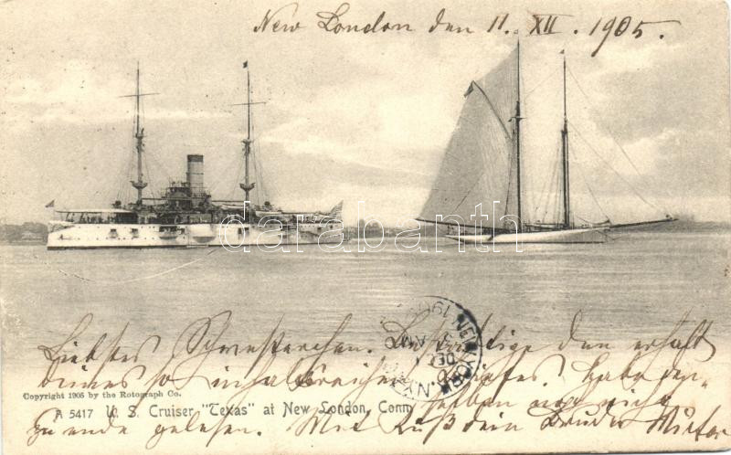 US Cruiser Texas at New London, Conn.; US navy https://www.darabanth.com/de/285-Fernauktion/285.0/Ansichtskarten/Kriegsschiffe~200061/US-Cruiser-Texas-at-New-London-Conn-US-navy~II954435