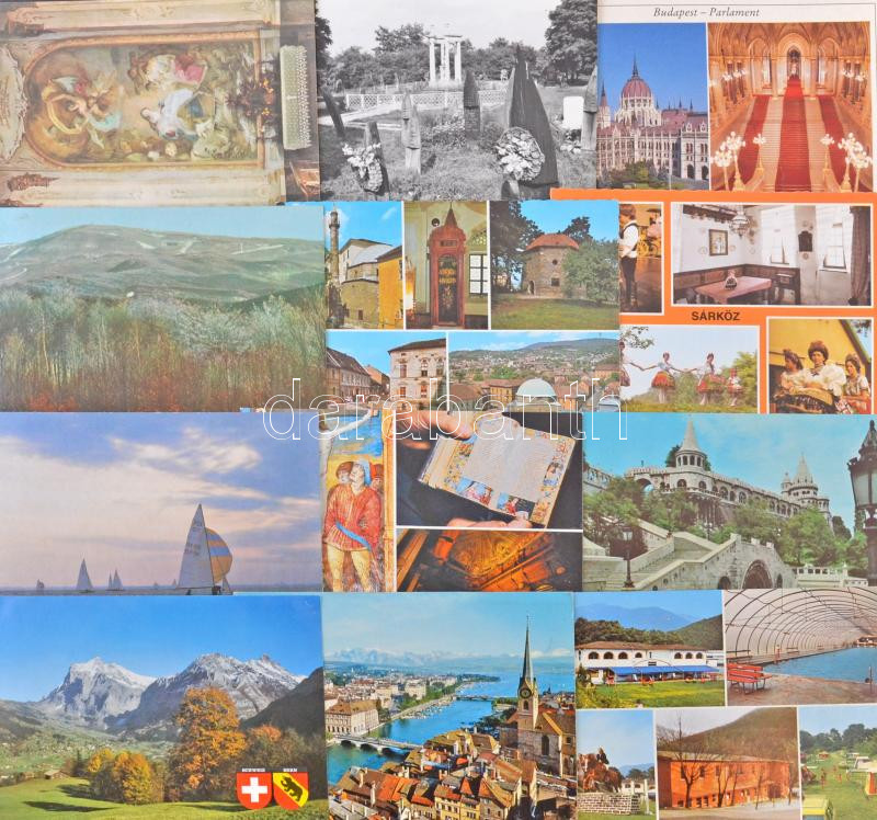 1 doboznyi főleg MODERN külföldi képeslap, városképes és motívumlapok, sok leporelló, több régi fotó / 1 box of mostly MODERN European and Worldwide postcards, townview and motive cards, many leporello booklets, some pre-1945 photos