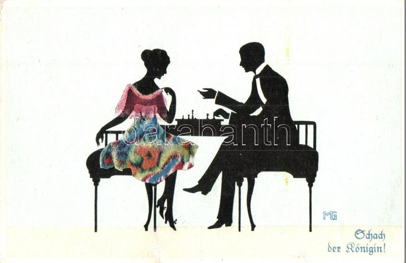 Couple playing chess, silhouette art postcard (EK) https://www.darabanth.com/de/285-Fernauktion/285.0/Ansichtskarten/Schach~200077/Couple-playing-chess-silhouette-art-postcard-EK~II1492073