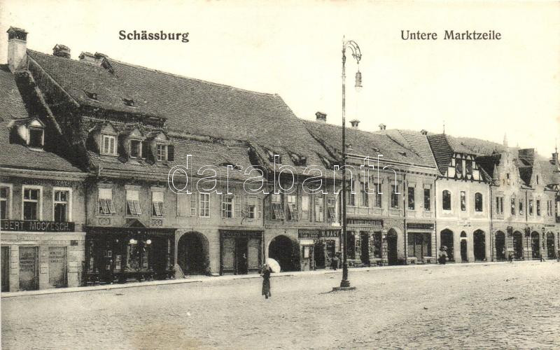 Segesvár, Schassburg, Sighisoara; Alsó vásársor, Alber Mockesch és J.B. Misselbachersen üzletei, W. Nagy könyvnyomdája / lower markets, shops, printing press