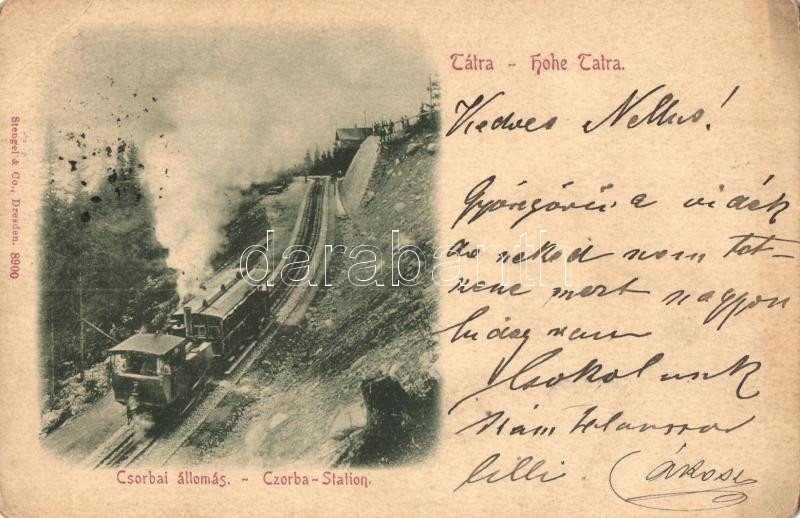 1899 Tátra, Magas Tátra, Vysoké Tatry; Csorbai állomás, fogaskerekű va... https://www.darabanth.com/de/285-Fernauktion/285.0/Ansichtskarten/Slowakei~200007/1899-Tatra-Magas-Tatra-Vysoke-Tatry-Csorbai-allomas-fogaskereku-vasut-funicular-station~II1491197