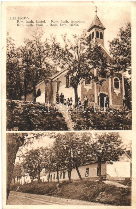 Beschreibung: Helemba, Hellenbach, Chlaba; Római katolikus templom és iskola, Tóth Kálmán kiadása / catholic church and school (EK)