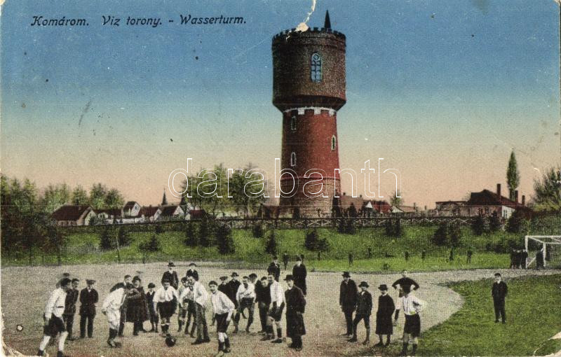 Komárom, Komárno; Víztorony, az előtérben fiúk futballoznak, K. J. Bp.... https://www.darabanth.com/de/285-Fernauktion/285.0/Ansichtskarten/Slowakei~200007/Komarom-Komarno-Viztorony-az-eloterben-fiuk-futballoznak-K-J-Bp-water-tower-boys-pla~II1487809