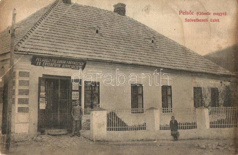 Beschreibung: Pelsőc, Pelsücz, Plesivec; Szövetkezeti üzlet / cooperative shop (EB)
