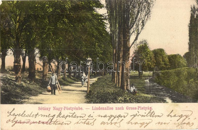 Beschreibung: Pöstyén, Piestany; sétány Nagy-Pöstyénbe / promenade (kis szakadás / small tear)