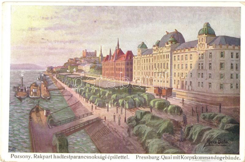Pozsony, Pressburg, Bratislava; Rakpart, hadtestparancsnoksági épület,... https://www.darabanth.com/de/285-Fernauktion/285.0/Ansichtskarten/Slowakei~200007/Pozsony-Pressburg-Bratislava-Rakpart-hadtestparancsnoksagi-epulet-B-K-W-I-386-12-quay-~II1491386