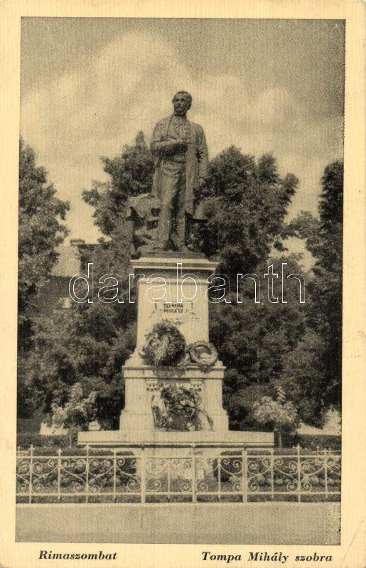 Rimaszombat, Rimavska Sobota; Tompa Mihály szobor, R. S. kiadása / sta... https://www.darabanth.com/de/285-Fernauktion/285.0/Ansichtskarten/Slowakei~200007/Rimaszombat-Rimavska-Sobota-Tompa-Mihaly-szobor-R-S-kiadasa-statue-EK~II1488126