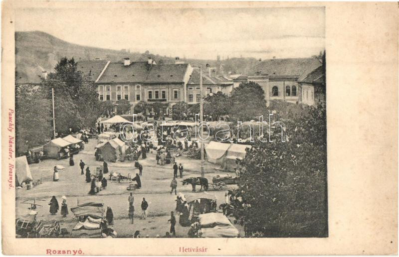 Beschreibung: Rozsnyó, Roznava; Hetivásár, piac, Pauchly Nándor kiadása / market (EK)