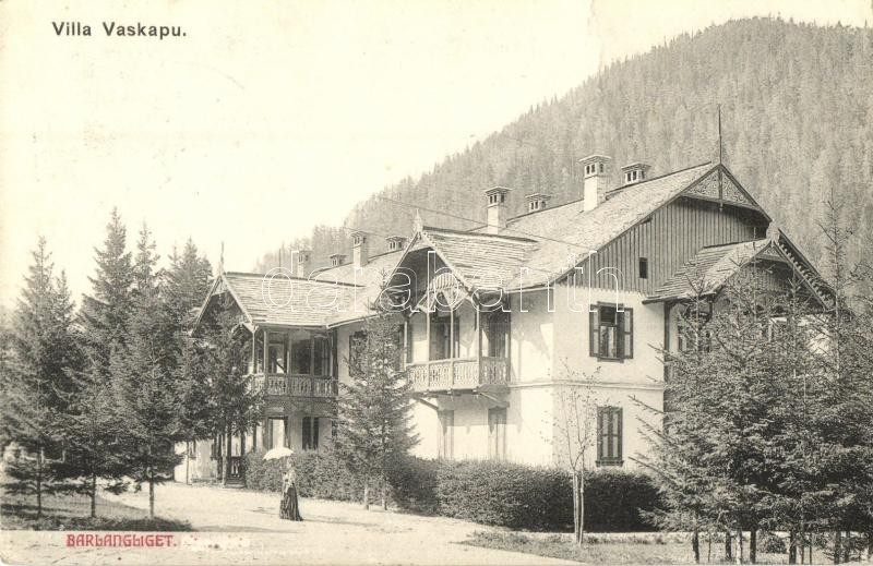 Beschreibung: Tátra, Barlangliget, Höhlenhain, Tatranská Kotlina; Vaskapu villa, Feitzinger Ede kiadása / villa (fa)
