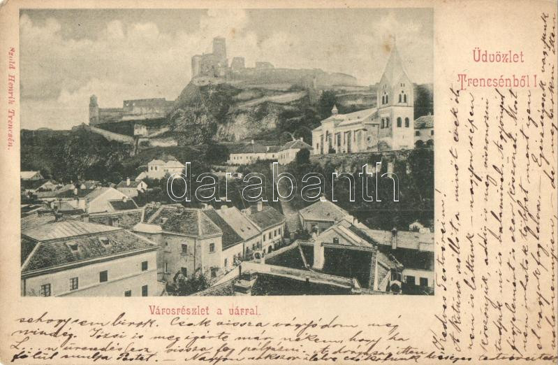 Beschreibung: Trencsén, Trencin; városrészlet a várral, Szold Henrik kiadása / castle (fl)