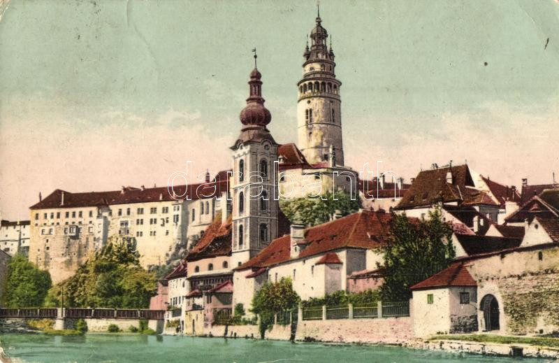 Cesky Krumlov, Krummau; Castle and St. Vitus church (EK) https://www.darabanth.com/de/285-Fernauktion/285.0/Ansichtskarten/Tschechische-Republik~200020/Cesky-Krumlov-Krummau-Castle-and-St-Vitus-church-EK~II1483894